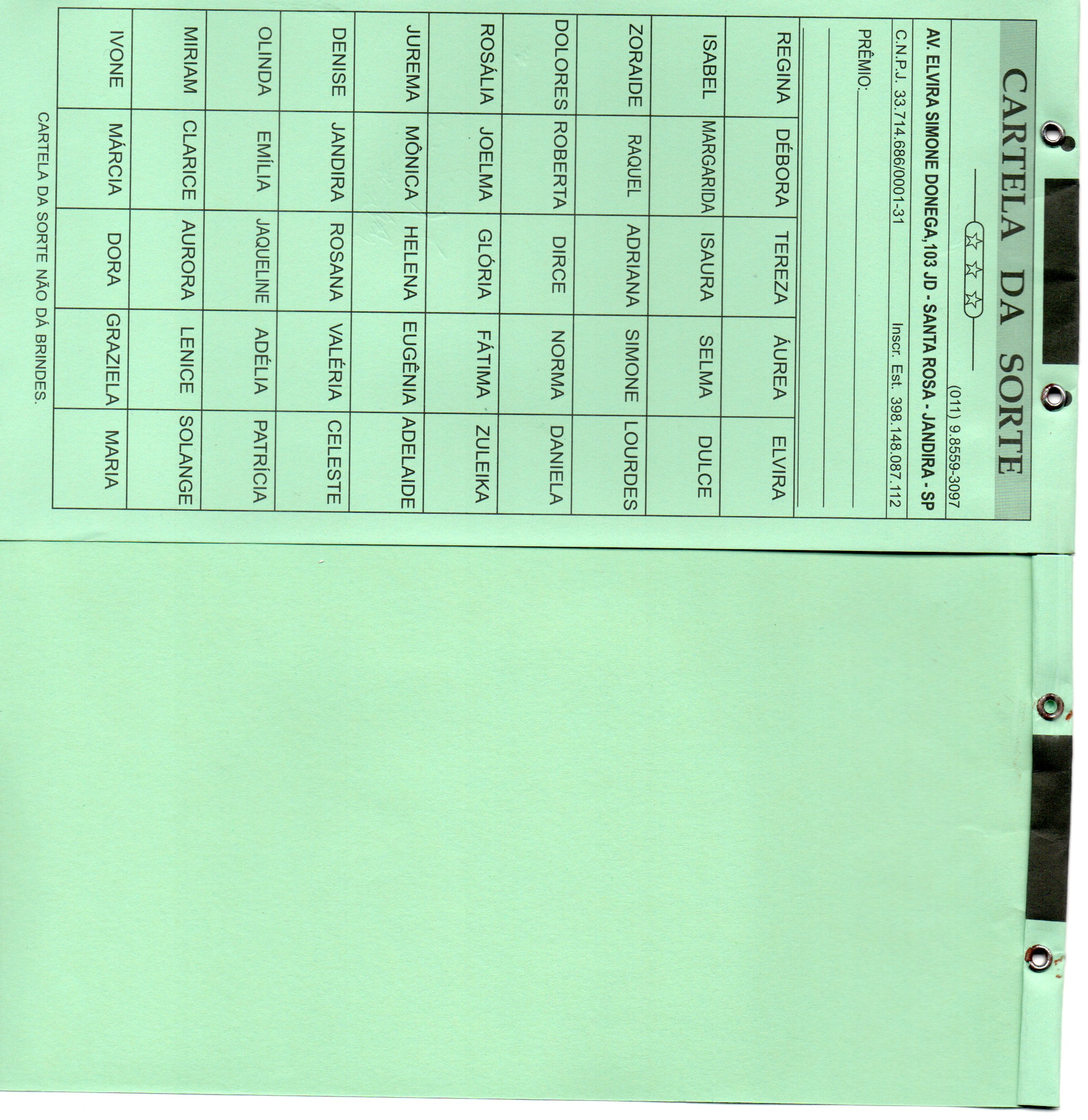 - 01 Cartela de Rifa Unidades